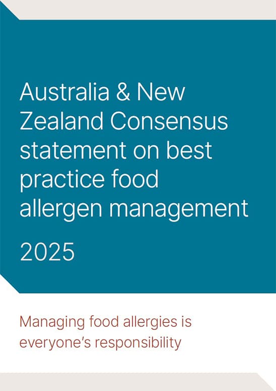 The National Allergy Council led the review and update of this important Consensus Statement which advocates for improved food allergen management by all sectors in the community and industry. The statement has been developed in collaboration with 17 other organisations. The Consensus Statement recognises that the safety of people with food allergies is a shared responsibility. It details the responsibilities of consumers, packaged food manufacturers, food service businesses, food retailers, health professionals, and regulatory and enforcement agencies.