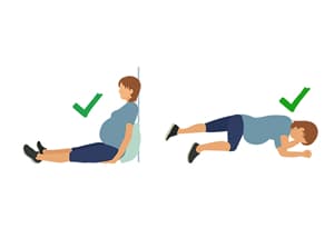 A pregnant person should sit with their legs stretched out flat or be placed in the recovery position on their left side for good blood flow from mum to the baby.