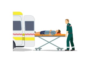 They should be taken to the ambulance on a stretcher or trolley bed.