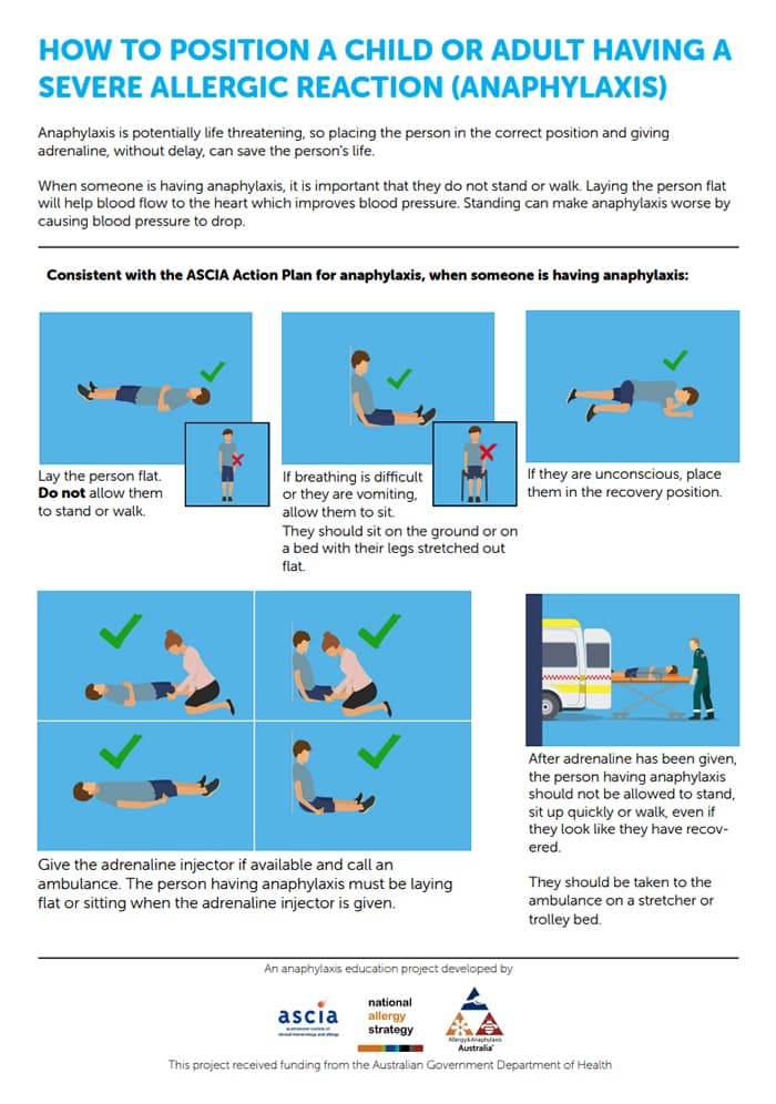 We have created an infographic of how to position a child or adult having anaphylaxis.