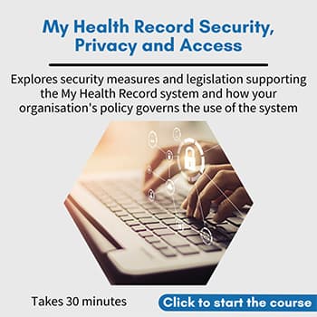 Learn more about digital health and using My Health Record by completing these eLearning modules hosted by the Australian Digital Health Agency. Click on the topic that is of interest to you below to register and complete a course. You can complete as many courses as you like. RACP CPD Participants can earn CPD credits (1 credit per hour) in the Educational Activities, Category 1 for the time they spend on these modules